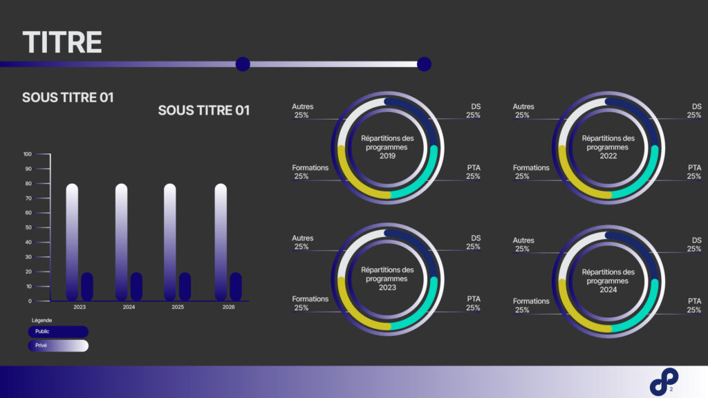 L’objectif majeur de ce travail était de concevoir une présentation capable d’accompagner efficacement APELS dans la communication de sa vision et de ses orientations. Il s’agissait de créer un document capable de structurer les idées, de clarifier les messages clés et de rendre la réunion plus fluide, plus dynamique et plus percutante. Le support visait également à consolider l’image professionnelle de l’organisation, en assurant une cohérence visuelle totale et en facilitant la compréhension globale des enjeux présentés.